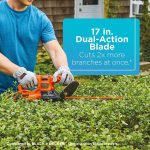 • The electric edge trimmer features 17-inch dual-action hardened steel blade for reduced vibration while trimming (Compared to BLACK plus DECKER single-action blade models)