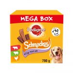 • VARIETY PACK CONTAINS THIRTY (30) 3.5 oz. pouches of PEDIGREE CHOPPED GROUND DINNER Wet Dog Food: (10) With Hearty Chicken (10) Bacon and Filet Mignon Flavor (10) Beef, Bacon and Cheese Flavors